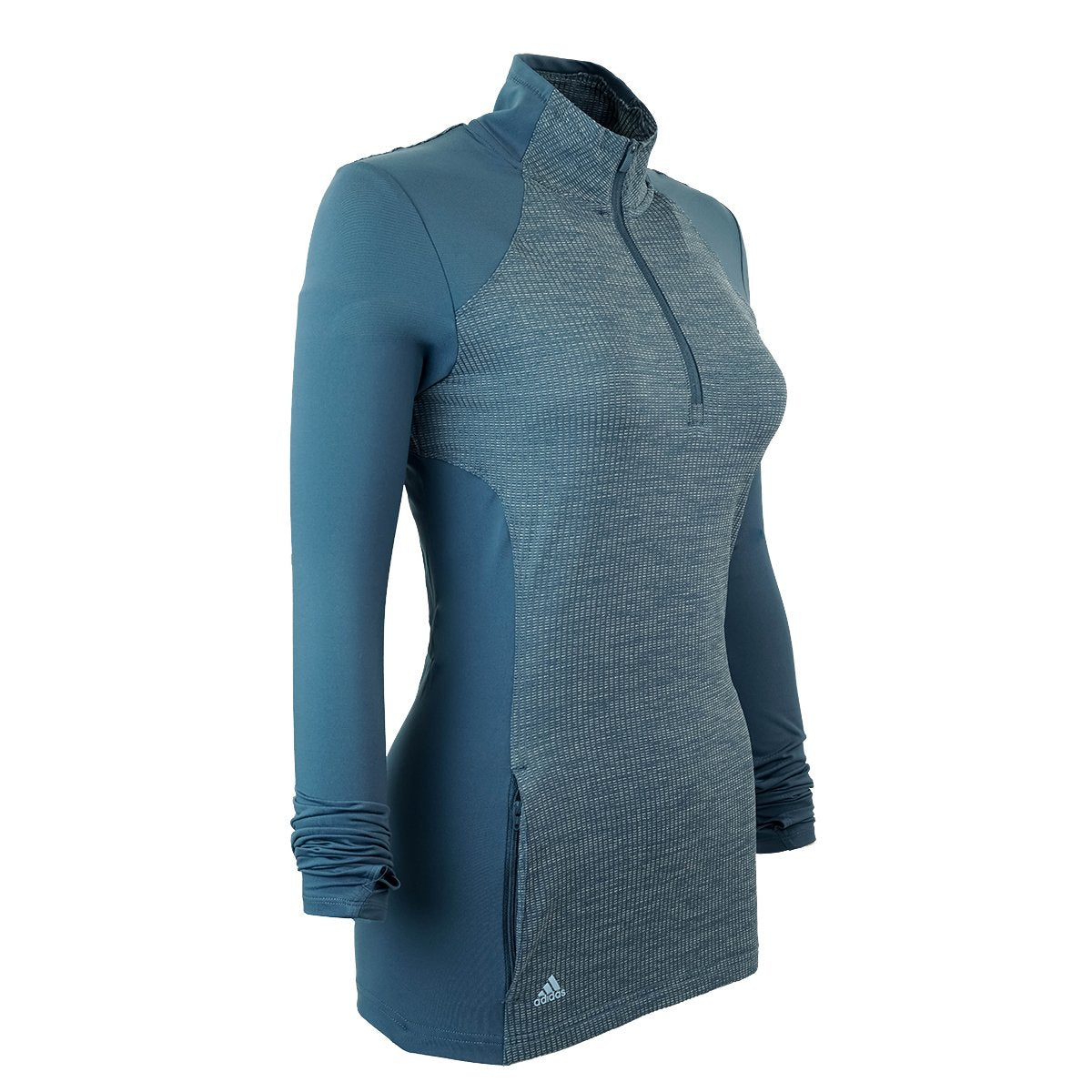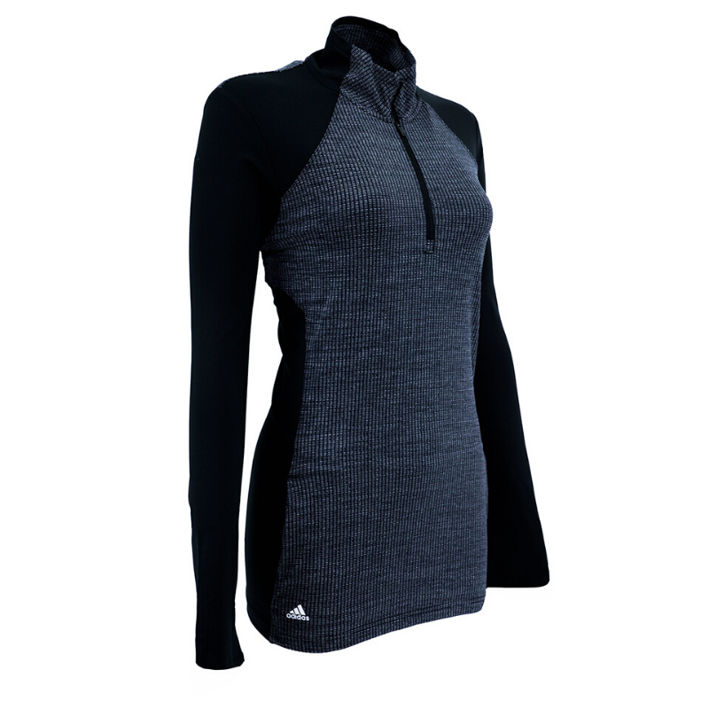 Outsmart the chill to and from the links in this golf jacket. Built with thumbholes on the sleeves for extra coverage, the half-zip pullover is made of stretchy knit stretch for flexibility and versatile all-day comfort. Tonal jacquard details give it a touch of casual flair.