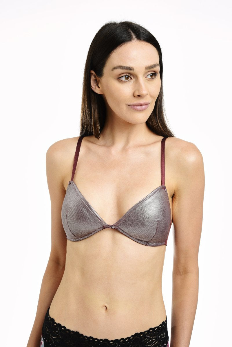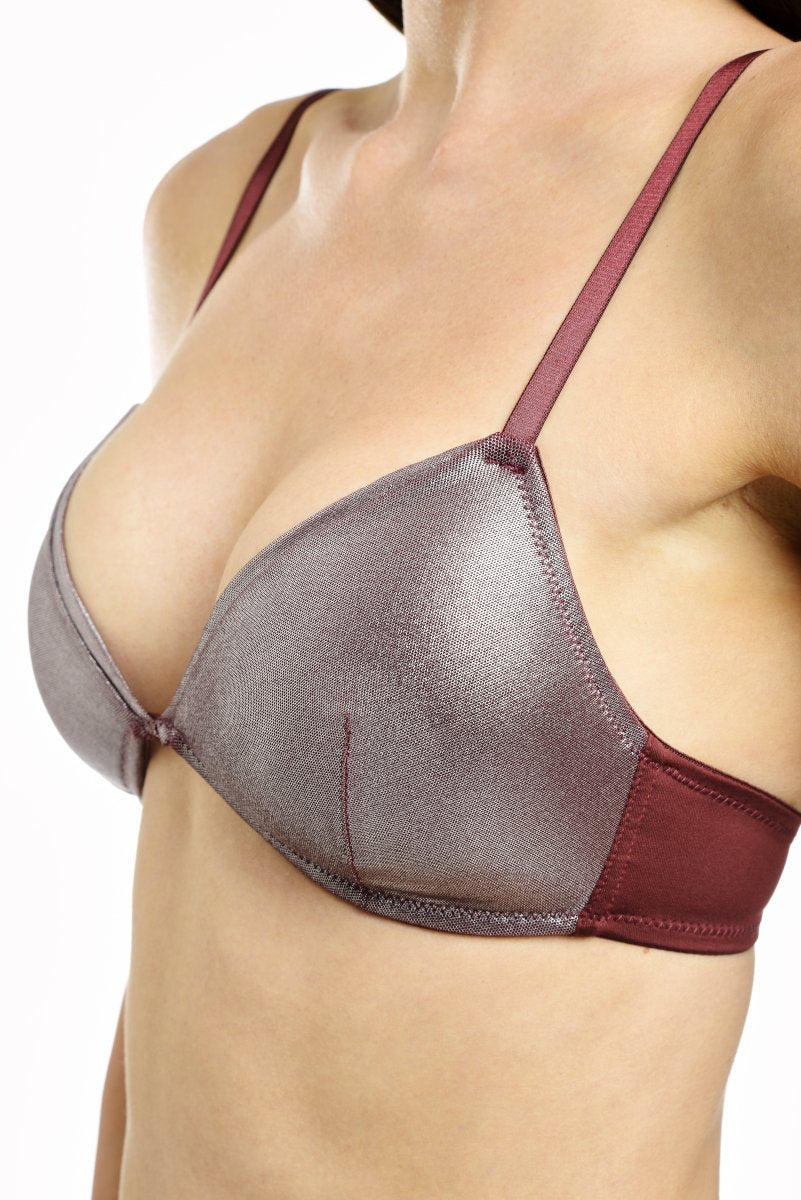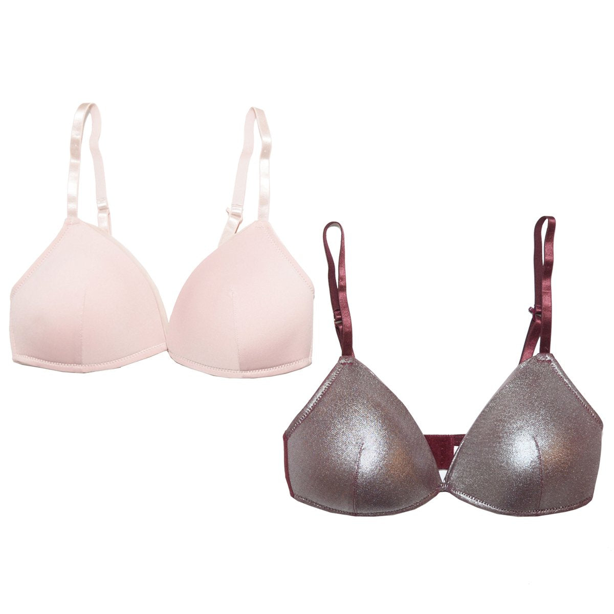 Product FeaturesLadies BCBGeneration 2 pack convertible back wireless bra with sheer lace construction, sheer lined cups. The maroon bra has silver foil mesh and sheer lined cups.