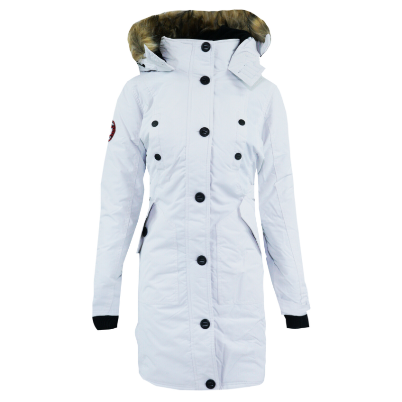 Update your cool-weather style with this new long parka jacket from Canada Weather Gear that has a faux fur trimmed hood.