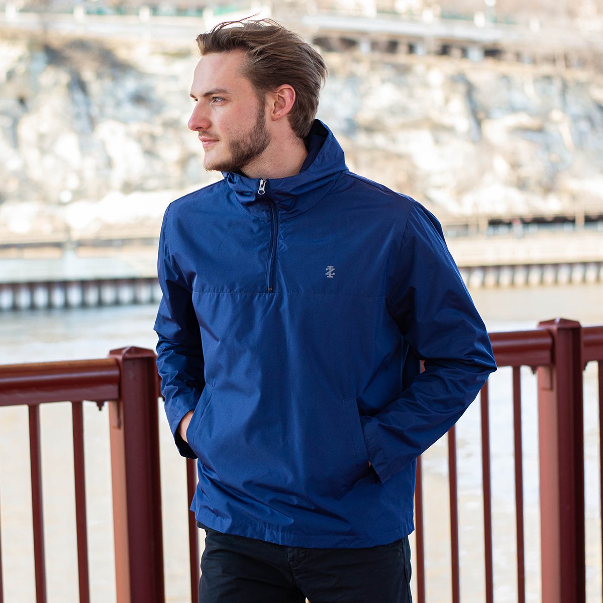 This IZOD Men's 1/4 Zip Pullover Jacket makes a great addition to any wardrobe. Features a wind & water resistant exterior, soft mesh lining, two hand pockets, and an attached hood.